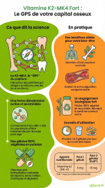 Prendre soin de son capital osseux est essentiel pour traverser les années avec sérénité et mobilité. Pourtant, un apport en calcium ne suffit pas toujours : encore faut-il que ce minéral soit correctement dirigé vers les os et non vers les tissus mous. De plus, notre mode de vie moderne, certains régimes alimentaires ou une flore intestinale fragilisée peuvent limiter notre production naturelle de Vitamine K2, créant un déficit invisible mais impactant pour la solidité de notre squelette.